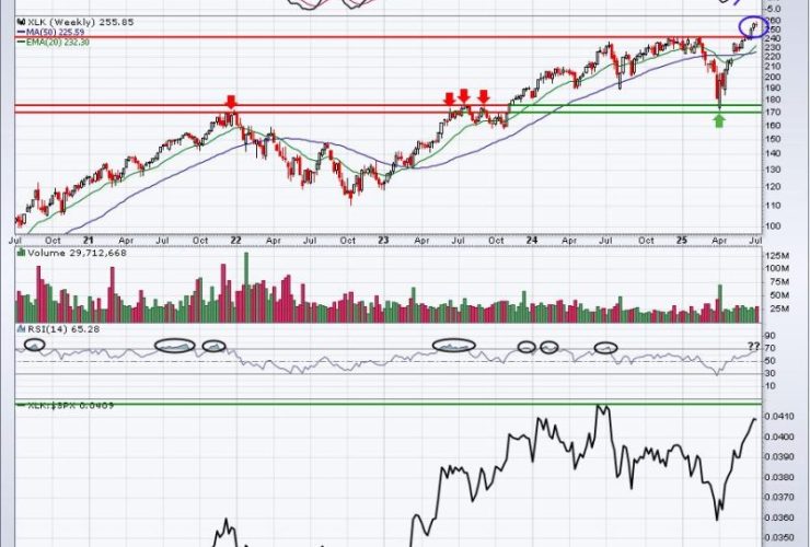 I remain very bullish and U.S. stocks have run hard to the upside off the April low with growth stocks leading the way. I expect growth stocks to remain strong throughout the summer months, as they historically do, but we need to recognize that they’ve already seen tremendous upside. Could technology (XLK) names, in particular, use a period of consolidation? ...